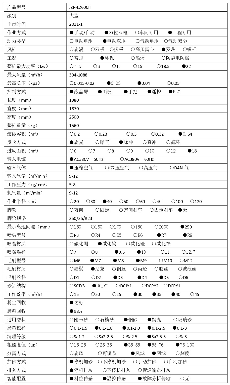 該機(jī)應(yīng)用于遠(yuǎn)程、高效和雙工位配置的船舶修造、港口建設(shè)、海油平臺(tái)、橋梁、水利、礦山、冶金、油田管道、車(chē)輛制造等領(lǐng)域。該機(jī)的工作效率優(yōu)于JZR-LZ600型和JZR-LZ700型設(shè)備,是工程施工智選設(shè)備之一。(查看噴砂機(jī)視頻)